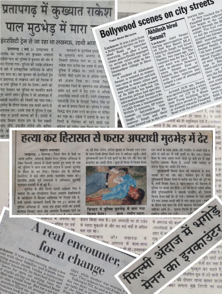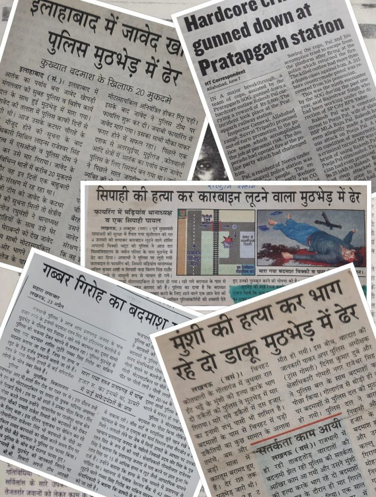 Among the list of history-sheeters, many hardcore criminals like Ratan Singh, Vijay Menon, Raka Pasi, Vivek Bhatt, Yajuvendra alias Kala, Rajesh Chauhan, Surendra Singh, Santosh Kumar alias Banda Badshah, Vinod Pal Yadav, Uzair Ahmed, dacoit Jagga Sardar were killed in police encounters under his leadership.