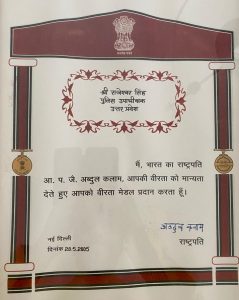 After the encounter of the dreaded criminal Ratan Singh, Dr. Singh was awarded the ‘President’s Gallantry Medal’, the highest award for gallantry in police service in 2005, by the then President Hon’ble Dr. APJ Abdul Kalam.
